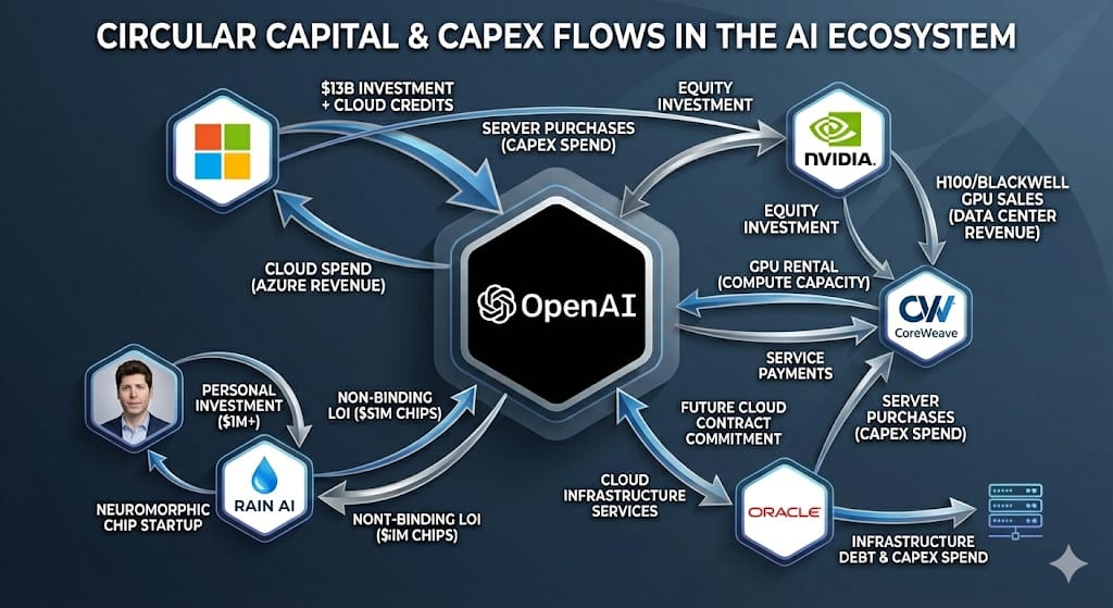 And beyond labels, another weird part of this era is that the money is increasingly circular. Companies invest in other companies, who then use that money to buy compute, chips, and cloud from the same ecosystem that financed them. Sometimes the “customer” and the “capital provider” are effectively part of the same machine. This cycle has permitted OpenAI to line up $1.4T in capital commitments for future infrastructure buildout.